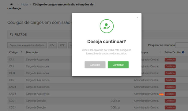 Passo a passo: Exibição e ocultação do código do cargo ou função de confiança