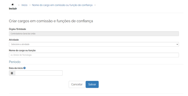 Para cadastrar um novo nome de cargo em comissão ou função de confiança: