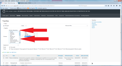 Em “colunas disponíveis” selecione nessa ordem os seguintes itens: Meta do 1º Tri, Meta do 2º Tri, Meta do 3º Tri, Meta do 4º Tri, Meta do Projeto, Meta Alcançada.