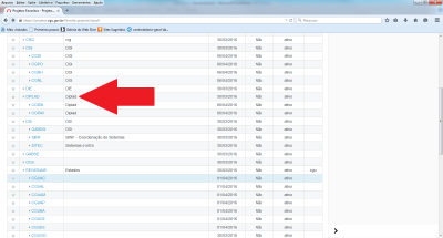 Você somente terá acesso aos projetos de sua unidade ou das equipes que faça parte. A tela a seguir mostra na esquerda a unidade DIPLAD.
