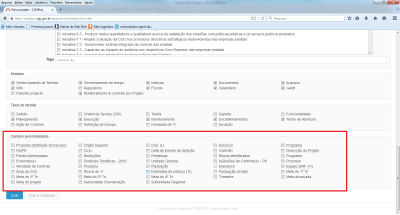 Deve-se obrigatoriamente selecionar os seguintes campos personalizados: Meta do 1º Tri Meta do 2º Tri Meta do 3º Tri Meta do 4º Tri Trimestre Meta do projeto Meta alcançada