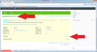 • 3. Para cada produto (a ação pode ser composta de um ou mais produtos) existe uma subtarefa de planejamento. A tarefa planejamento se refere ao produto que será entregue durante todo o ano. Após adicionar a subtarefa planejamento deve-se adicionar a subtarefa execução. Assim, deve haver para cada produto uma tarefa de planejamento.