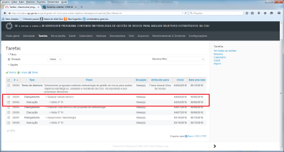 Após a criação do subprojeto (cadastro da ação no sistema), clique em “nova tarefa”.